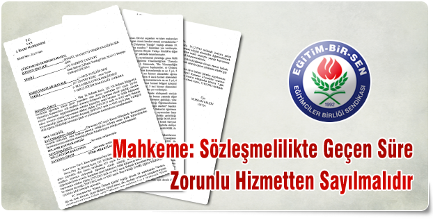 Van 2. İdare Mahkemesi, oybirliğiyle aldığı kararında, 04.06.2011 tarihinden önce, 16.12.2010 tarihinde kadroya geçen üyemizin, sözleşmeli öğretmen olarak çalıştığı sürenin adaylık süresinden değerlendirilerek zorunlu hizmetten muaf tutulma ve özlük haklarının iadesi istemiyle yaptığı başvurunun reddine ilişkin dava konusu işlemde hukuka uygunluk bulunmadığına hükmederek, dava konusu işlemin yürütmesinin durdurulmasına karar verdi.